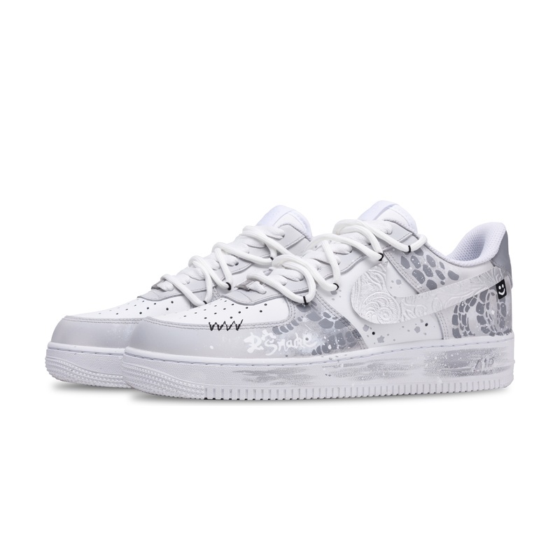 Custom Air Force 1 Shoes Silver Gray Snake Dance