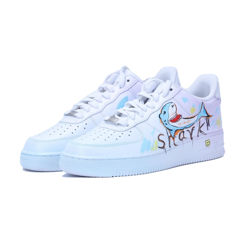 Custom Air Force 1 Shoes White Blue Graffiti Shark