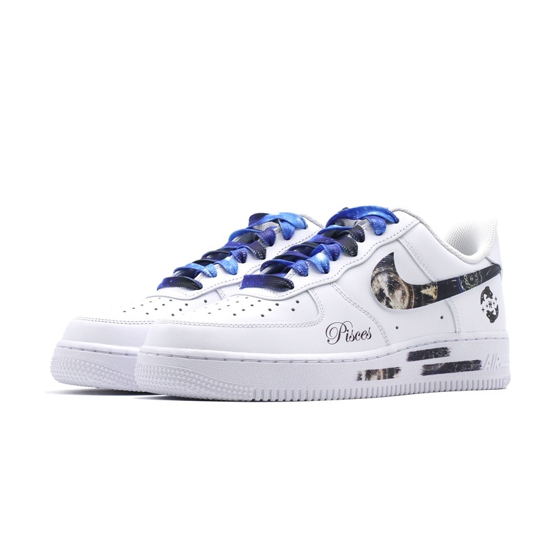 Custom Air Force 1 Shoes White Blue Pisces Galaxy
