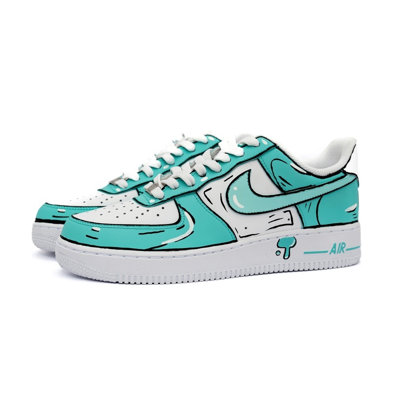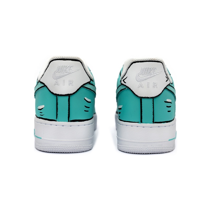 Custom Air Force 1 Shoes White Cyan Anime Style