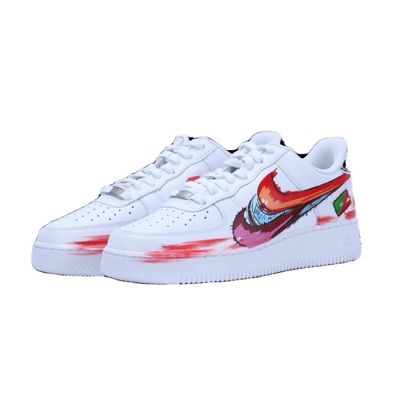 Custom Air Force 1 Shoes White Red Color Clash