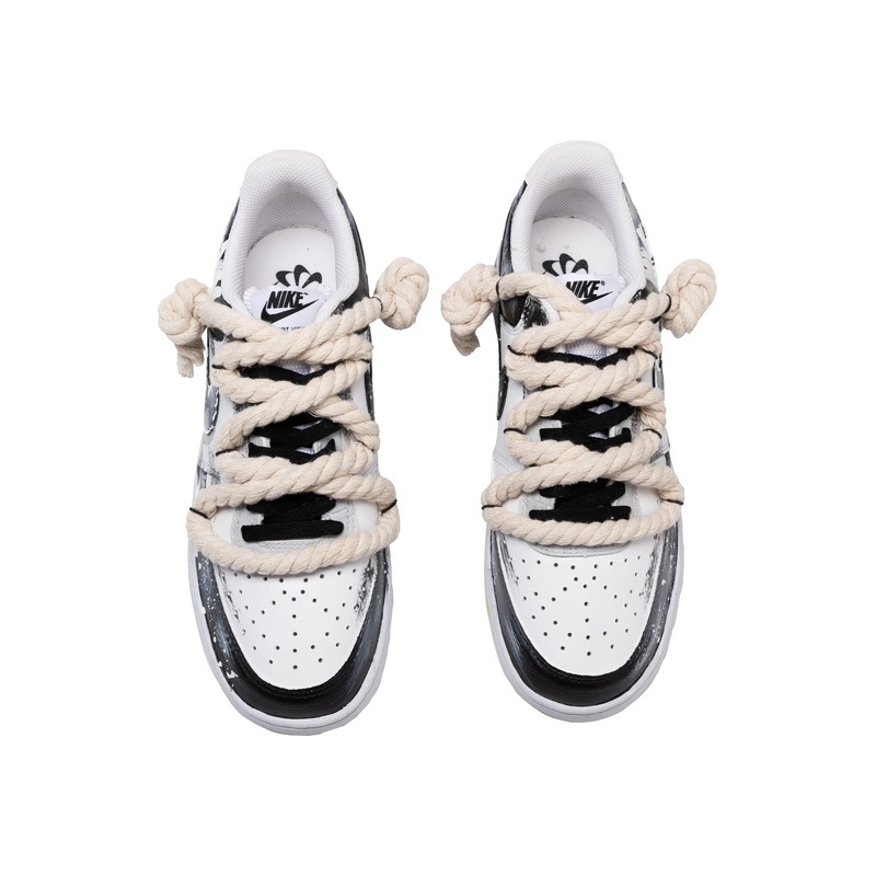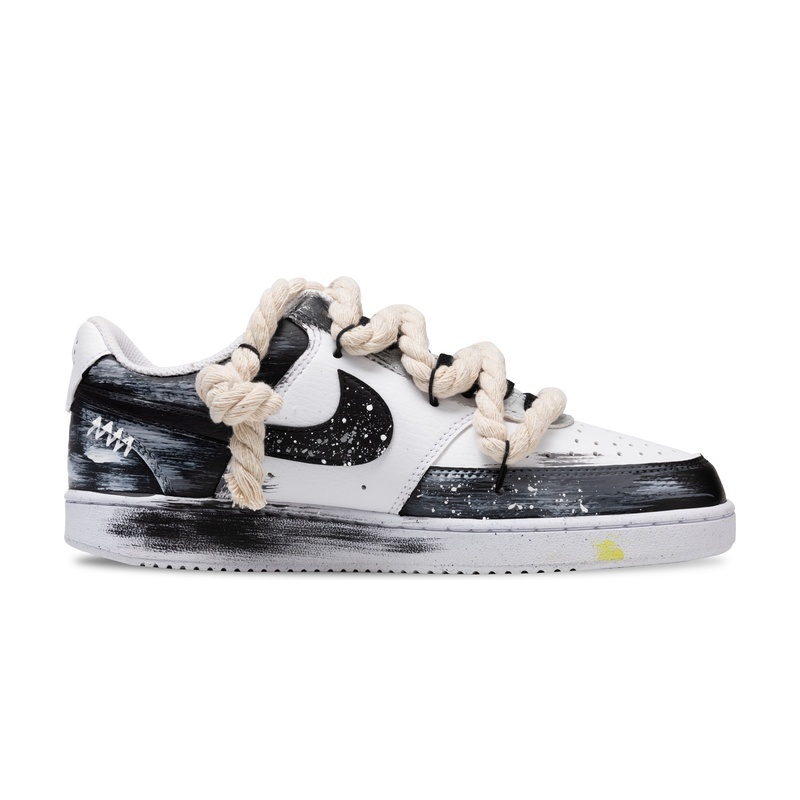 Custom Court Shoes Black White Autumn Chrysanthemum