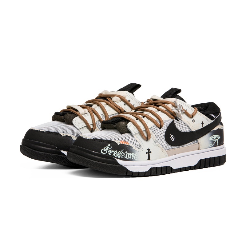 Custom Dunk Shoes White Brown Cross Pattern